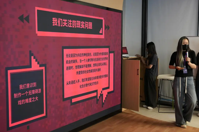 在作品试玩和展示交流环节,参赛小组通过现场演示与设计讲解,全面呈现48小时内的创作成果。开发者不仅分享了创意理念与技术实现路径,更在跨团队对话中交流碰撞想法,拓宽了参与者对游戏社会价值和开发方法的认知边界,强化了行业交流与公益传播的协同效应。