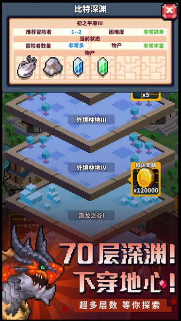 《冒险与深渊》是一款放置类游戏,也是一款养成类游戏,甚至是一款低买高卖的经营类游戏。与前作《冒险与挖矿》相比,新作传承了它别致的像素画风,相信这种含蓄的像素美术风格可以给大家带来更多的想象空间。