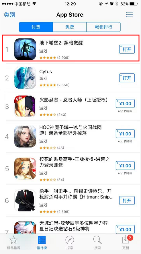 ▶ 《地下城堡2: 黑暗觉醒》获得众多玩家喜爱,排名不断上升,最终在短短36小时后荣登AppStore付费版第一!