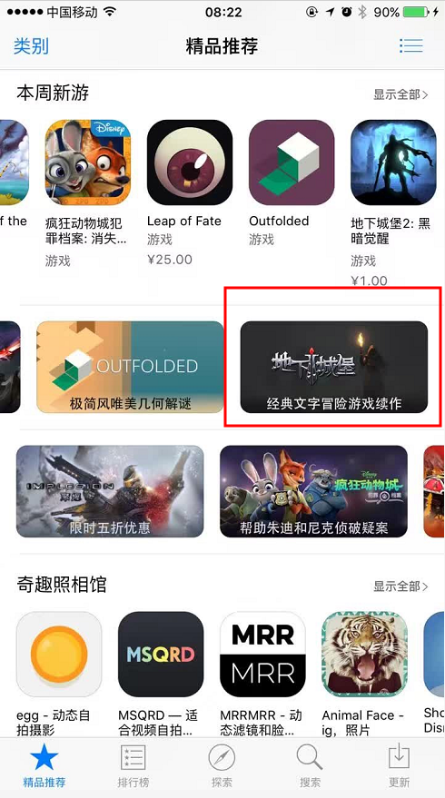 ▶ 《地下城堡2: 黑暗觉醒》荣获AppStore精品推荐,推荐理由为“经典文字冒险游戏续作”。